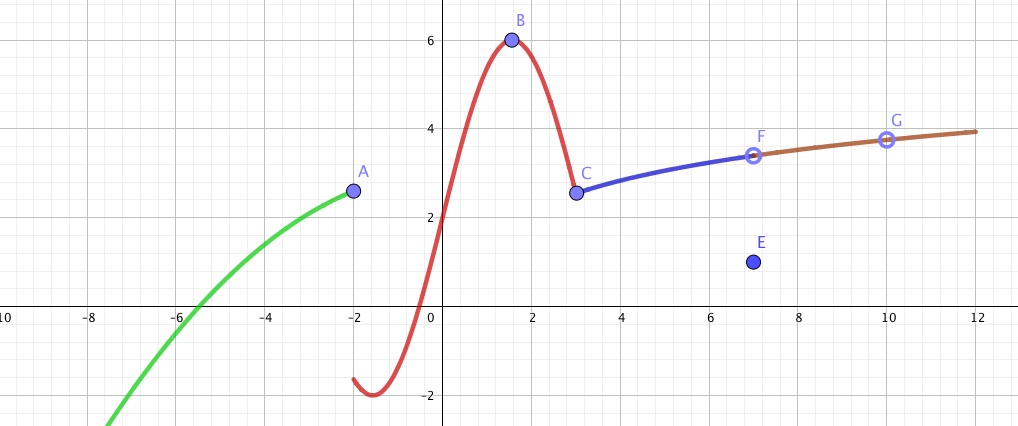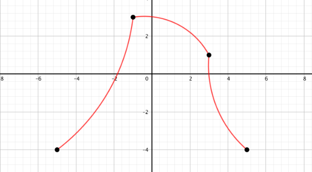 5. Si on a pu en calculer, on ajoute des points remarquables avec leur tangente si possible : point d'inflexion, point anguleux avec les demi-tangentes