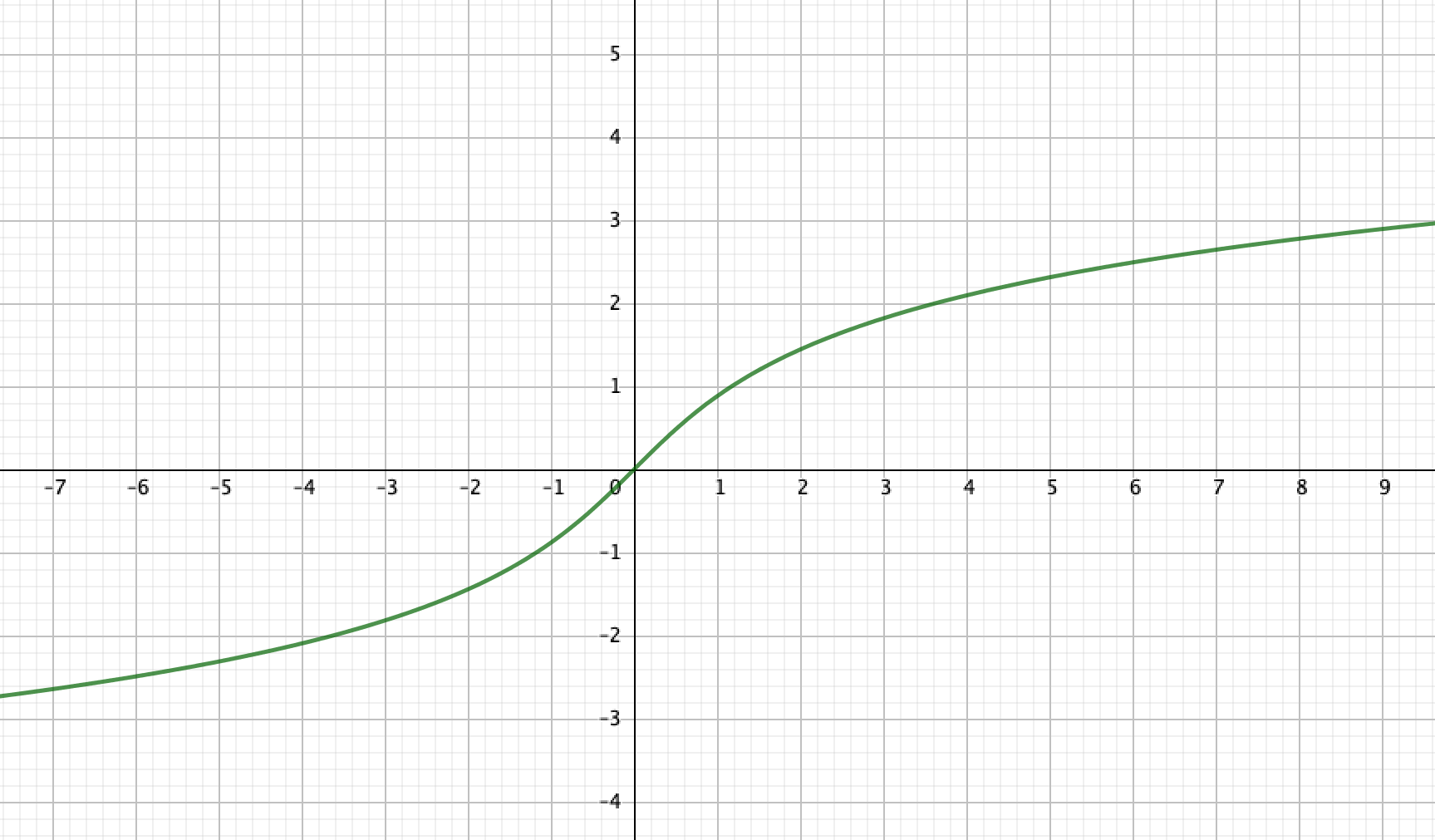 • Pour l'étude des branches infinies (donc x0), on forme la quantité : f(x)x=ln(x 2+1)x. Les théorèmes de croissance comparée montrent que ceci tend vers 0 en ±. La courbe admet donc des branches paraboliques parallèles à Ox en + et en .