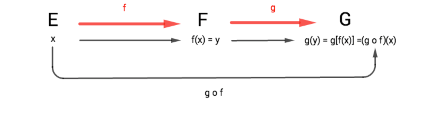 1. Étant donnés deux ensembles E et F, on définit une fonction f de E dans F si à chaque élément x de E est associé au plus un élément de F (que l'on notera f(x) s'il existe), appelé image de x par f.