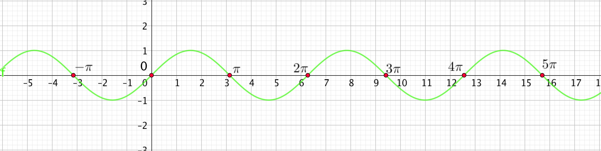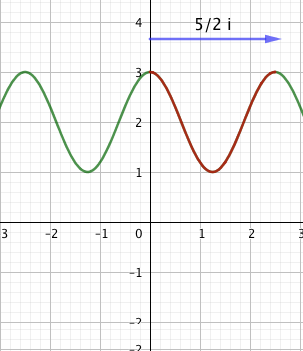 Solution. Pour tracer la courbe représentative, on étudie la fonction f sur un intervalle de longueur T judicieusement choisi. La représentation graphique sur s'obtient alors en traçant la courbe sur cet intervalle de longueur T, puis en lui appliquant des translations successives horizontales de vecteurs kTi,k.