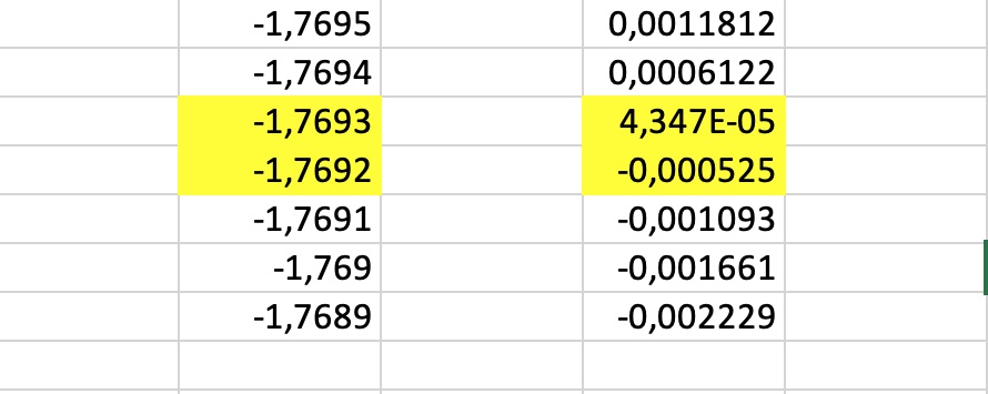 Avec Excel, c'est un peu plus précis, on obtient la valeur approchée de -1, 7692 à 10 4 près.
