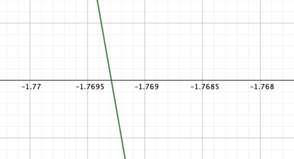 Avec Geogebra on arrive à l'encadrement [1,7695;1,1690], c'est à dire une valeur approchée à 10 3 égale à -1, 769.