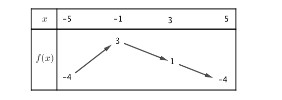 4. On suppose qu'à la suite d'une étude, une fonction f continue sur [5,5[ a le tableau de variation ci-dessous. On sait de plus qu'elle est convexe sur [5,1] et [3,5], et concave sur [1,3]
