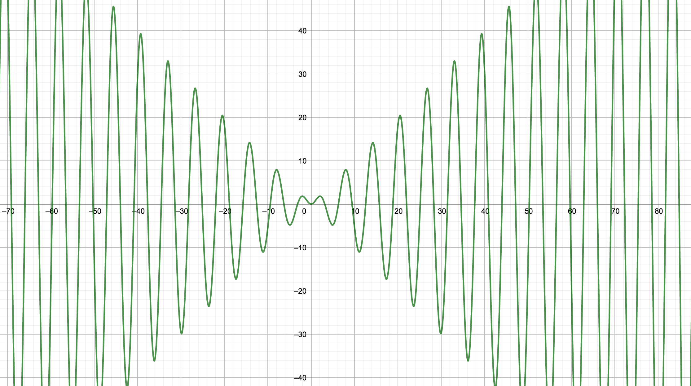 Les trois fonctions, dont les représentations graphiques sont ci-dessus, sont définies sur . La première est paire, la seconde impaire et la troisième est périodique de période 5/2, à étudier donc sur [0,52] par exemple. Elle est d'ailleurs également paire.